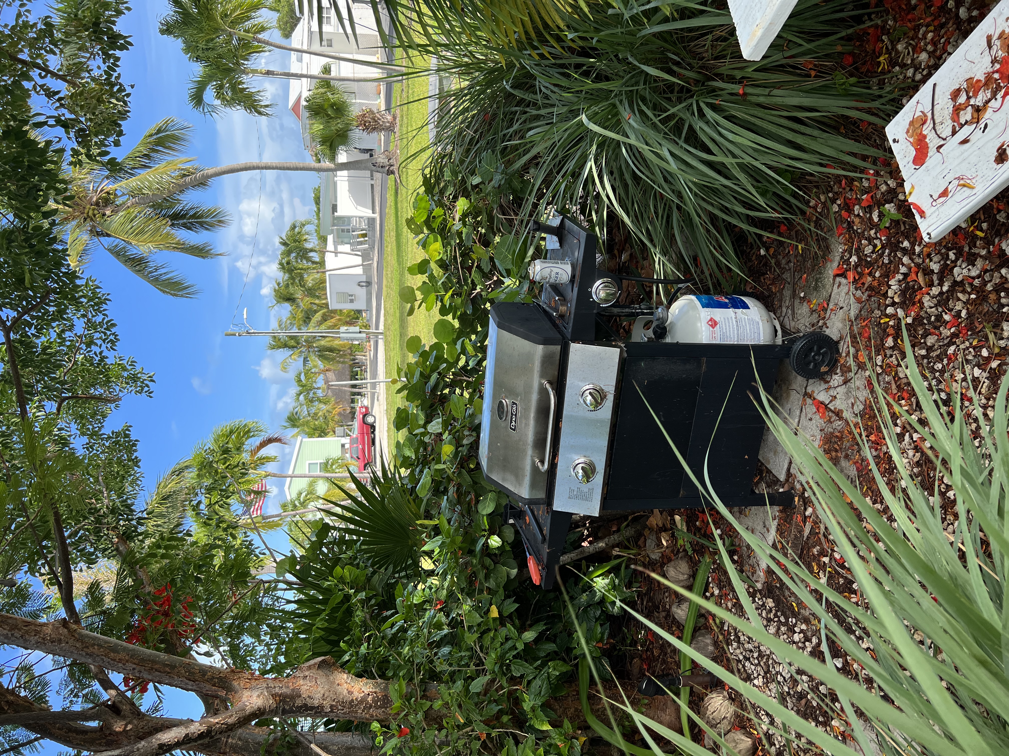 Unit 10 This Unit is a fully furnished studio/efficiency. The unit has a queen size bed, small dining table with two chairs and a comfy leather sofa. It has a fully equipped kitchen, and a private bathroom (toilet, sink and shower). All dishes, pots and pans, towels and linens are provided (not Beach/Pool towels). The AC will keep you cool at all times. Smart TV and access to high speed WiFi. The studio has a front porch with two chairs and a small table. It has a small front yard with tropical plants and has its own gas-BBQ grill and picnic table with a large umbrella for shade. |